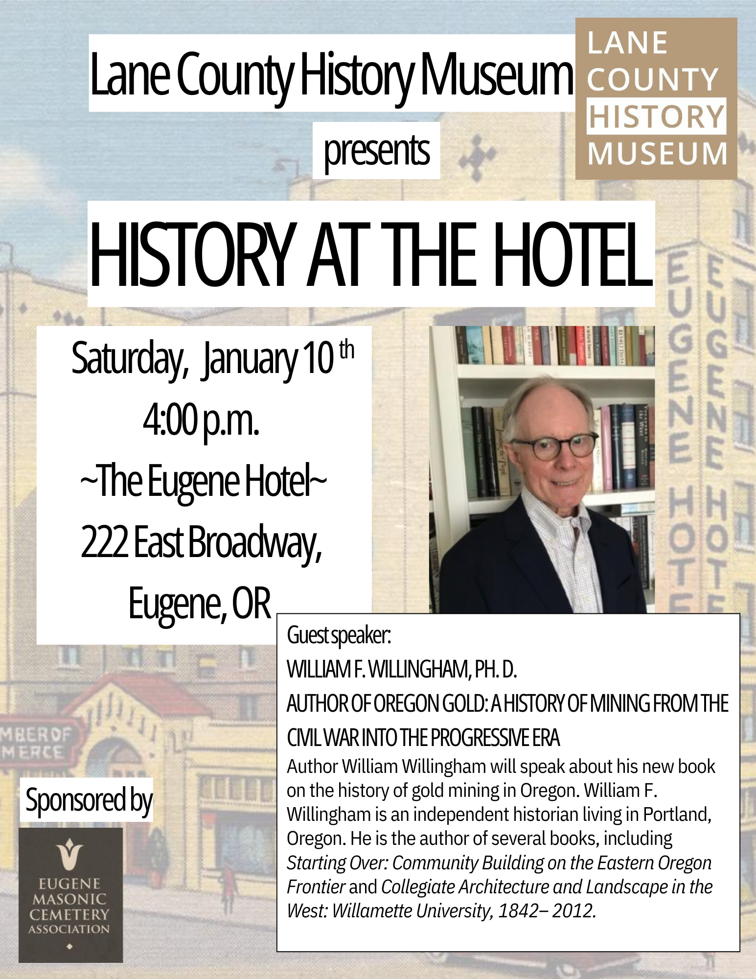 History at the Hotel, every second Saturday at 4PM at the Eugene Hotel. This month, learn about gold mining in Oregon from […]